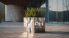 The planter’s clean geometry pairs beautifully with vertical plants such as sansevieria, grasses, palms, or sculptural succulents. Its weatherproof construction and minimalist aesthetic give it a timeless presence suitable for high-end landscaping projects.